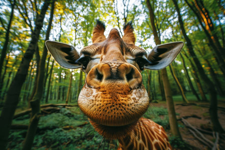 Curious Giraffe Exploring Lush Woodland, Wildlife Portrait on Safari Photography Adventure