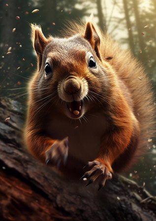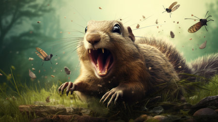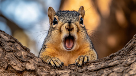 Chipmunks joyful surprise captured as it bares teeth in amazement. Concept Chipmunk Photography, Surprised Chipmunk, Adorable Wildlife Portraits