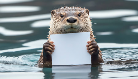 Close-up of a cute otter swimming in a river.