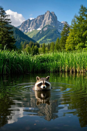 Water raccoons and forest background images