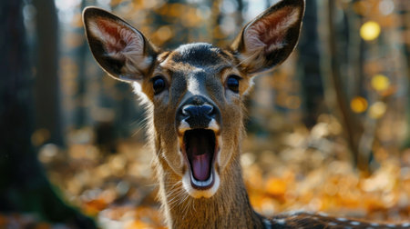 Close-up portrait of a fawn in the autumn forest.