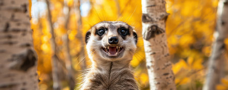 A curious meerkat stands tall and alert in the African grasslands, surrounded by stunning natural scenery. This captivating scene captures the essence of wildlife in its habitat.