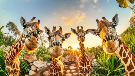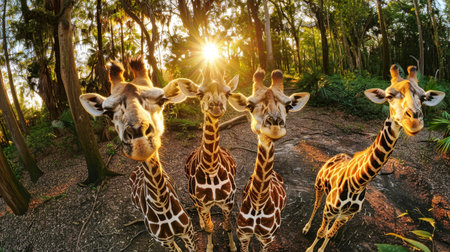A group of graceful giraffes with their towering necks standing side by side in unity on the savannah.