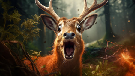 Deer with sunglasses on bright orange backdrop, quirky style