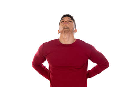 young man isolated on background with expression of pain