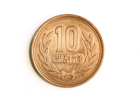 Japanese 10 Yen coin isolated on white