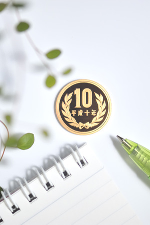Japanese money (coins) on white background