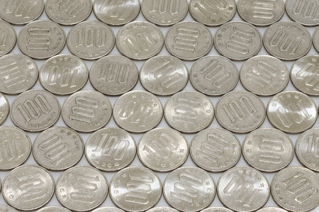 Pile of Japanese coins, 100 Yen