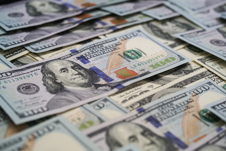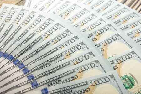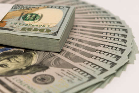 American cash dollars close-up. One Hundred Dollar Banknotes. Soft focus image.