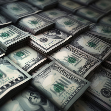 ai generated illustration collection of money stacks of 100 US dollar banknotes that make up a large portion