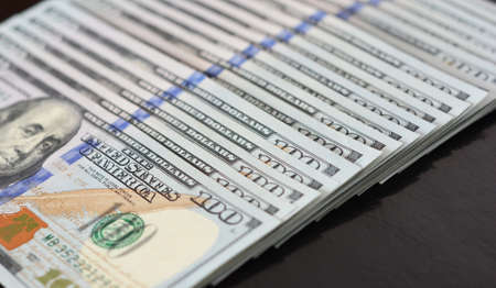 American cash dollars close-up. One Hundred Dollar Banknotes. Soft focus image.
