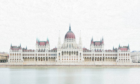 Picturesque building of the Hungarian Parliament in Budapest.