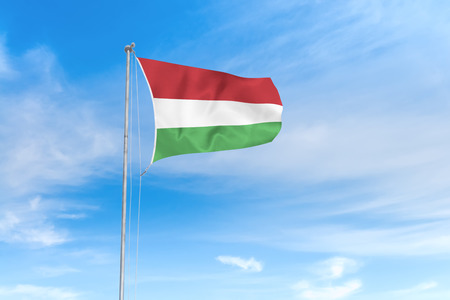 Hungarian flag on a blue sky with clouds background
