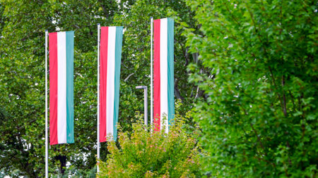 hungarian flag flying in the wind on a sunny day