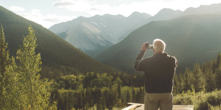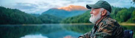 A serene mountain lake mirrors the smiles of an elderly man and his grandson, fishing together Their timeless bond, a heartwarming scene of shared joy and gentle mentorship, symbolizes enduring family ties and the peaceful beauty of nature Unforgettable memories are forged in this tranquil setting AI Generative