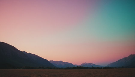 Breathtaking mountain vista at sunset, with plenty of space for copy.