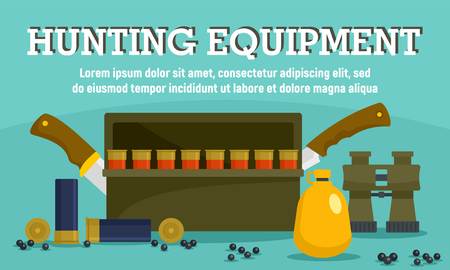 Modern hunter equipment concept banner, flat style