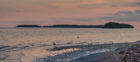Northern sandy beach. Russia, Karelia, lake Ladoga, Kojonsaari