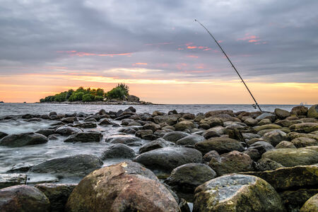 Fisherman stands on a cliff edge, admiring the vast ocean view while holding a fishing rod