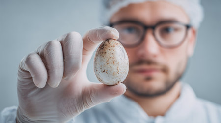 A researcher examines an egg believed to belong to an extinct animal species during a study