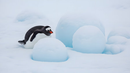 Playful Penguin Enjoys Winter Fun, Diving Through Fresh Snow in Antarctica, Wildlife Photography