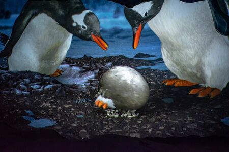 Orlando, Florida. November 06, 2019. Penguins watching their babys egg about to break at Seaworld 1