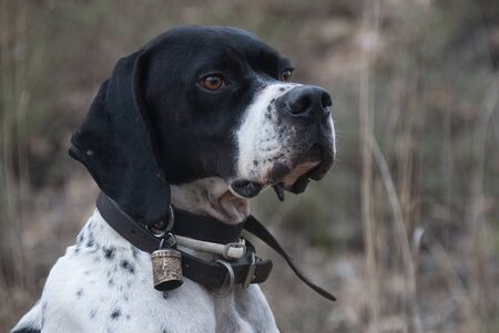 Dog english pointer portrait with GPS tracker, which helping to trakk the dog anywhere