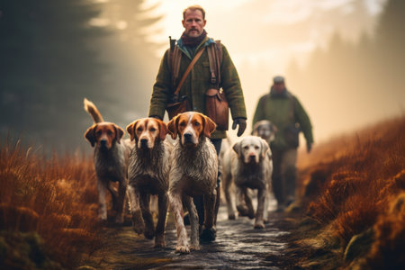 hunting breed of dogs in nature at the time of hunting. ai generative