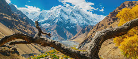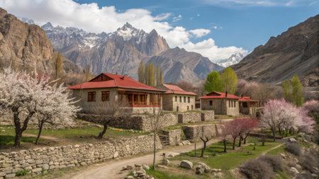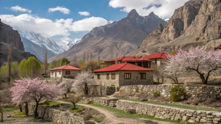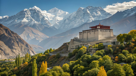 Experience the breathtaking autumn landscape of Skardu, Pakistan, showcasing vibrant colors, majestic mountains, and a serene village nestled in nature's beauty.