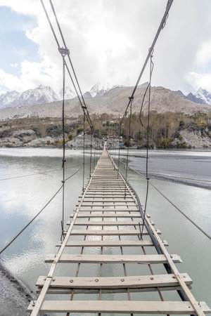 Hussaini Suspension Bridge in Hunza valley, Gilgit-Baltistan region of Pakistan