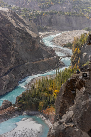 Confluence of Indus and Gilgit Rivers in Northern area of Pakistan