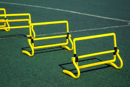 Hurdles on the tracks at the athletics stadium