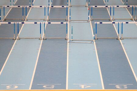 Hurdles on an empty track.