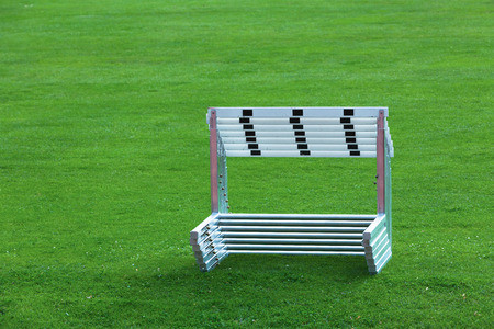 Track and hurdles on the green lawn
