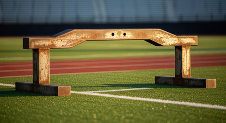 Weathered hurdle on sunlit track field