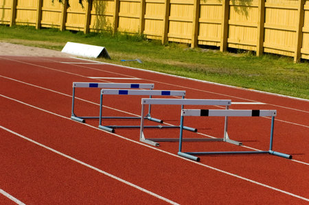 a hurdles on red running tracks