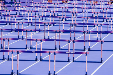 Hurdles on an empty track.