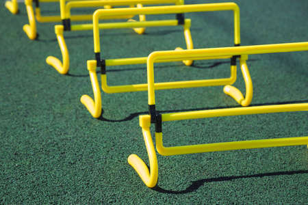 Hurdles on the tracks at the athletics stadium