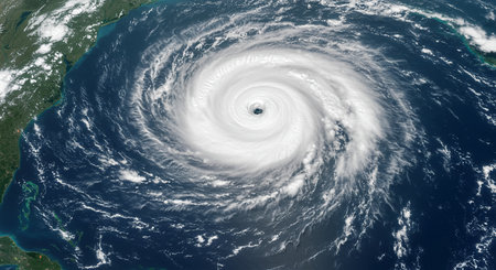 Dramatic aerial view of a powerful hurricane with eye over the ocean