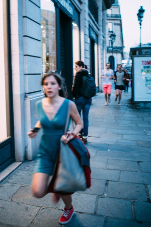 city people walking on piazza in motion blur