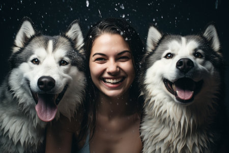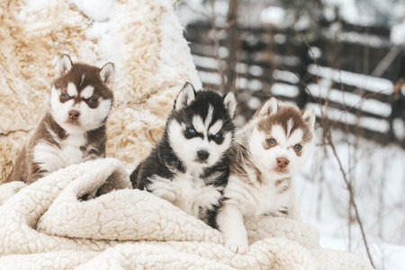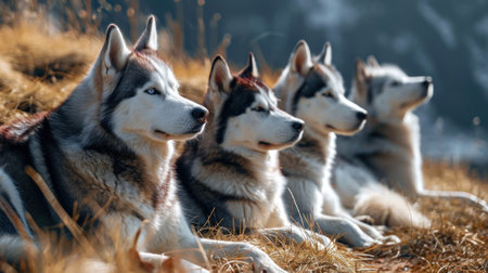 Trio of Graceful Huskies: A Portrait of Loyal Comrades