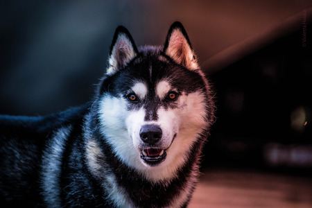 A closeup shot of a beautiful Siberian Husky on blurred background