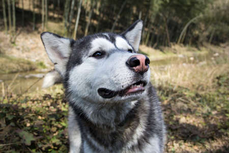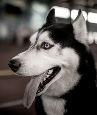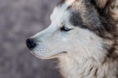 Husky portrait, outdoor dog pet face