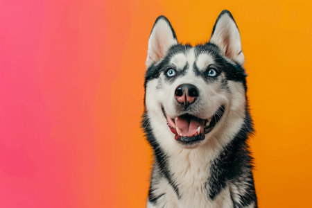 Majestic Siberian Husky Portrait on Vibrant Orange Background Stunning Photography of a Noble and Proud Husky Dog with Striking Blue Eyes and Gorgeous Fur Against a Bold and Bright Backdrop AI Generative