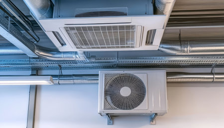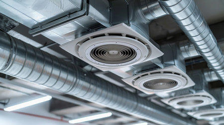 ventilation system, with ducts and vents, serving modern office building, created with generative ai