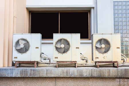 More Air conditioning system (Coil air heater) assembled on side of a building.Thailand