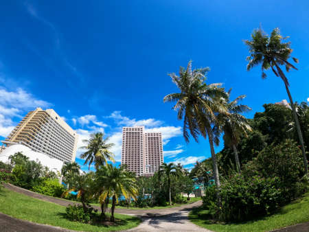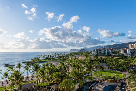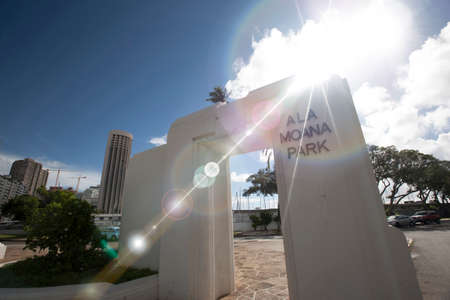 Scenic urban Waikiki Beach vista on a beautiful Hawaiian afternoon