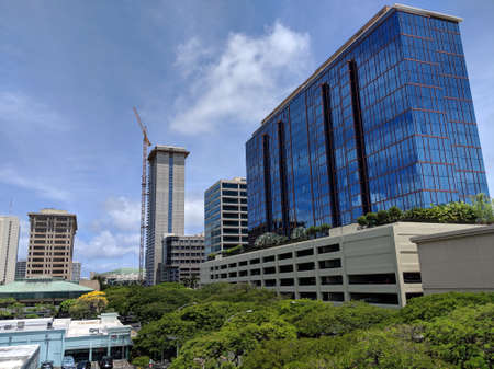Honolulu, Oahu, Hawaii - November 04, 2019: street view in downtown Honolulu. Honolulu is the capital and largest city of the US state of Hawaii