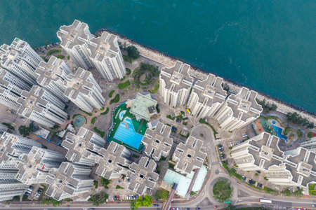 Chai Wan, Hong Kong 02 May 2019: Drone fly over Hong Kong residential district