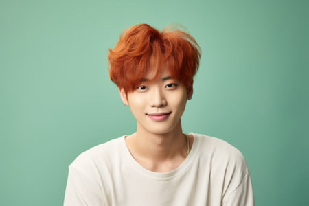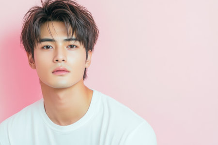 Handsome male wearing a white shirt on soft pastel color background.